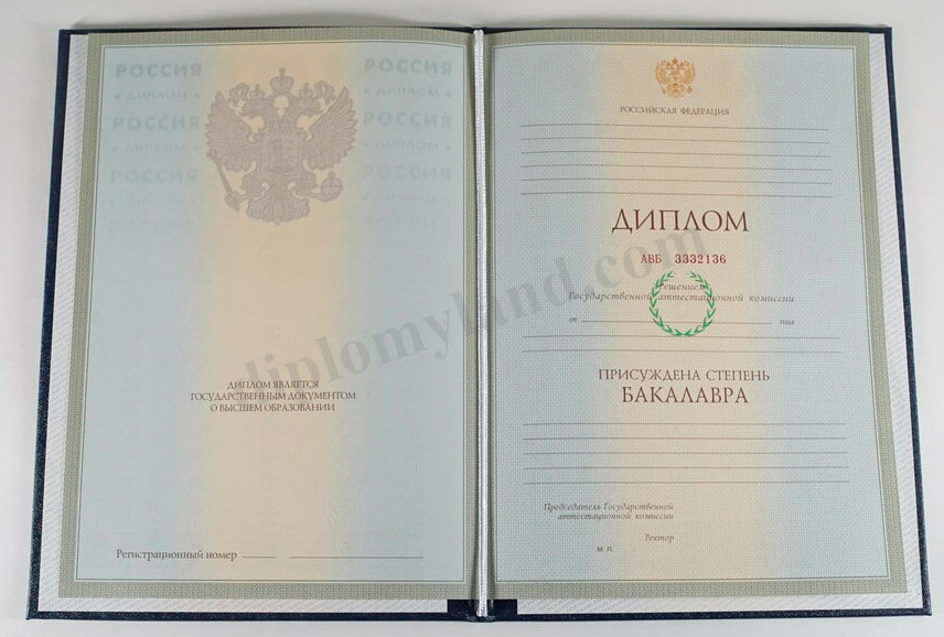 Наши специалисты позаботятся, чтобы дата выдачи диплома бакалавра совпала с возрастом заказчика. Документ изготавливается на бумаге, отпечатанной в типографиях государственного предприятия Гознак.